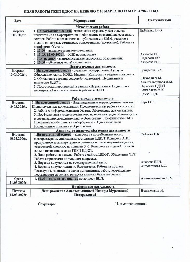 2026 ЖЫЛҒЫ 10 НАУРЫЗДАН 13 НАУРЫЗҒА ДЕЙІН БІР АПТАҒА АРНАЛҒАН БЖШО МКҚК ЖҰМЫС ЖОСПАРЫ