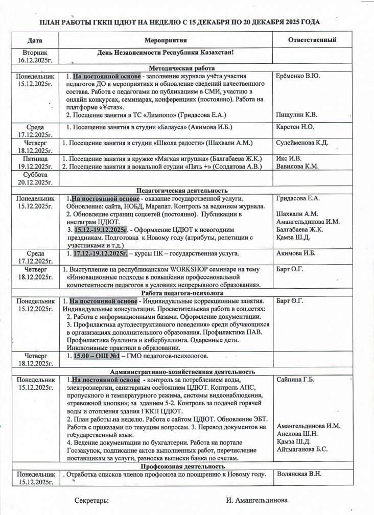 2025 ЖЫЛҒЫ 15 ЖЕЛТОҚСАННАН 20 ЖЕЛТОҚСАНҒА ДЕЙІН БІР АПТАҒА АРНАЛҒАН БЖШО МКҚК ЖҰМЫС ЖОСПАРЫ