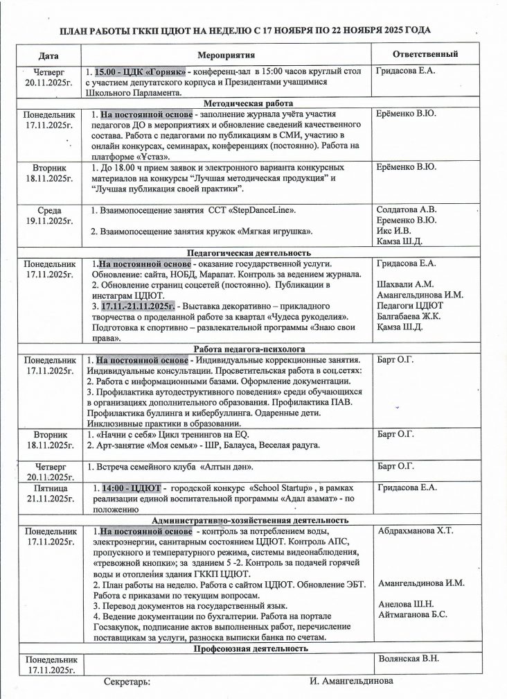 2025 ЖЫЛҒЫ 17 ҚАРАШАДАН 22 ҚАРАШАҒА ДЕЙІН БІР АПТАҒА АРНАЛҒАН БЖШО МКҚК ЖҰМЫС ЖОСПАРЫ